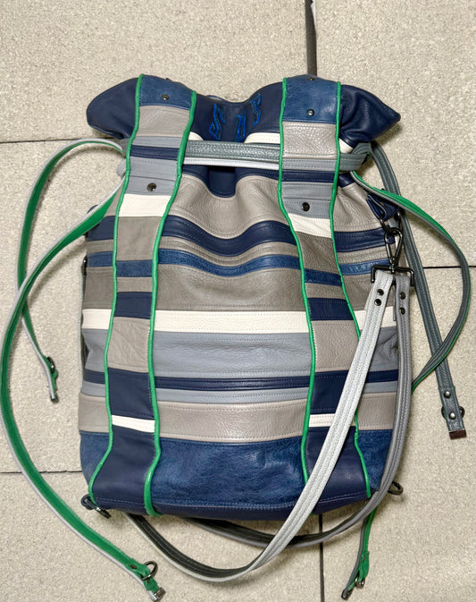 Sold outSTRIPED LEATHER "SPACEMAN" TOTE