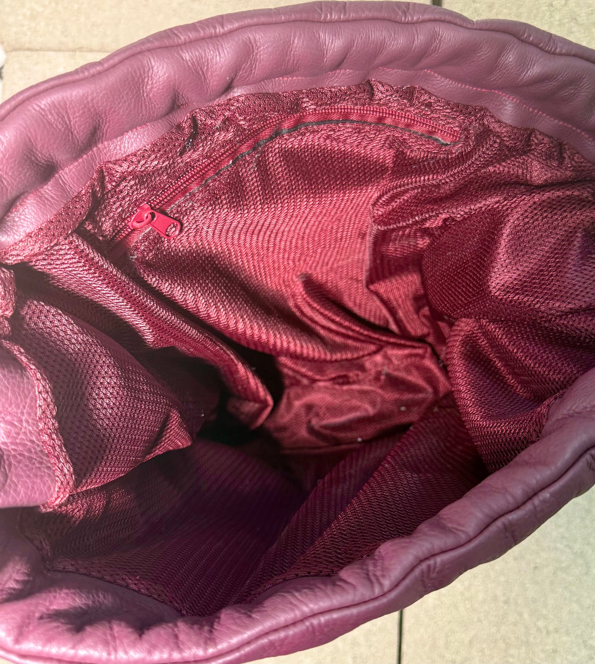The ABYSS Backpack is a versatile, hand-sewn piece built entirely from upcycled leather scraps, cut and stitched into a unique and intircate patchwork textile. Designed with versatility in mind, the thin leather drawstrings double as straps that can be clipped into two different positions — carrying as an over-the-shoulder bag or a full backpack. The all-leather construction, including the straps, keeps the silhouette sleek while showcasing the craftsmanship in every detail.