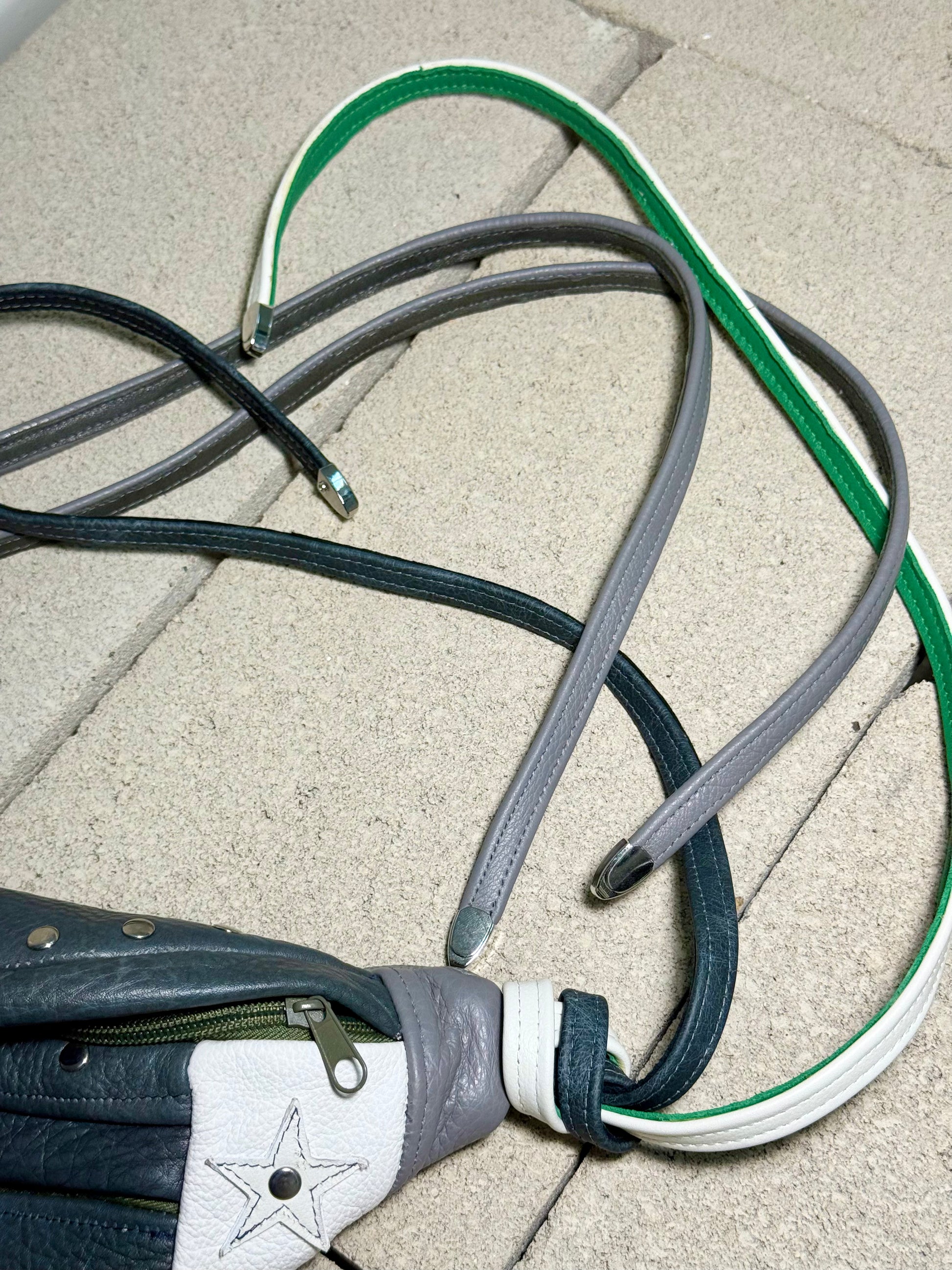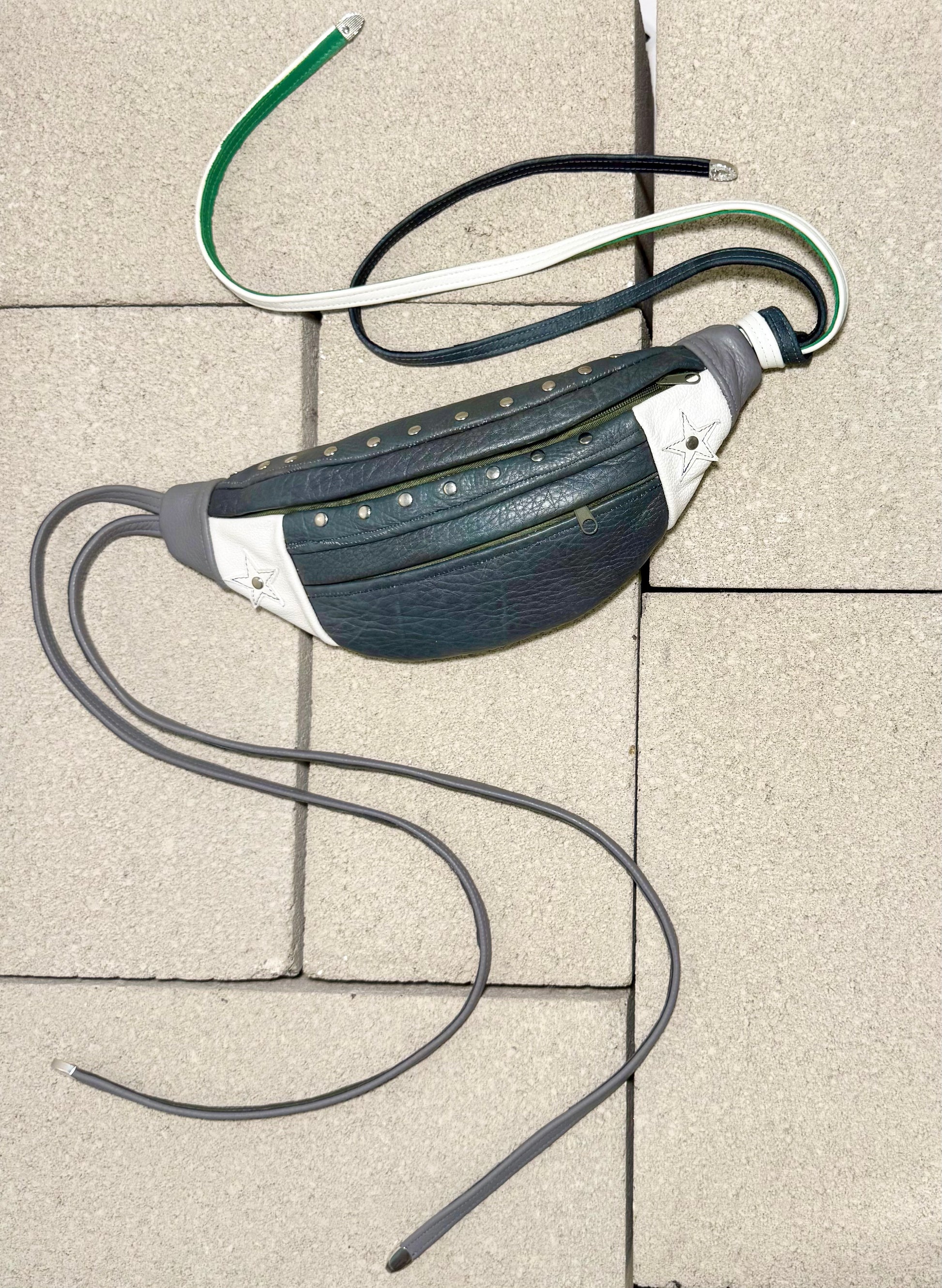 The SKYWALKER Crossbody is a signature SOS silhouette, designed for movement and individuality. While the design remains true to the brand’s identity, every SKYWALKER is a one-of-one colorway — made from recycled leather scraps, never to be replicated exactly.